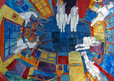 He specialises in abstracted interior views, often including representations of the people who bring them to life and he interprets the composition and detail to reflect his experience there.