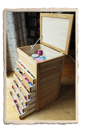 The drawers come with removable dividers so you can decide how to store your scissors, thread, accessories, haberdashery and other precious bits and bobs! There is plenty of space in the upper box for jars of buttons, patterns or quarters of fabric.