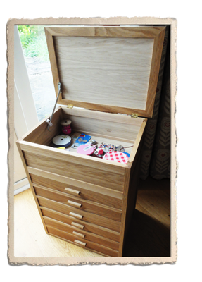 Get yourself organised! These beautiful Oak chests are perfect for storing all your sewing essentials tidily and safely. Available in two standard sizes, they are high quality, handmade to order and will last a lifetime.
