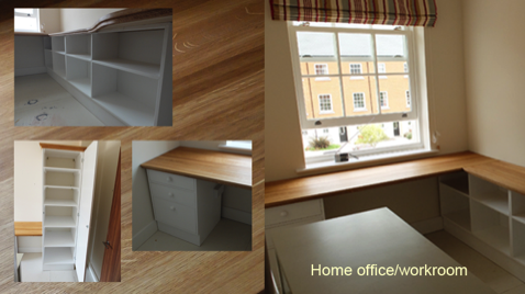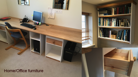 Many of us now work from home and I have been pleased to build a number of office spaces for clients. Often utilising spare bedrooms or landing spaces, they have included solid oak-topped desks with various bookcases, storage cupboards and filing shelves.