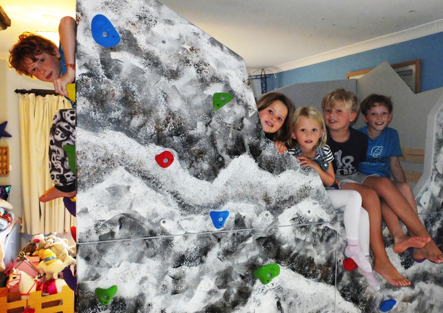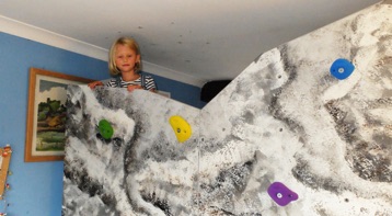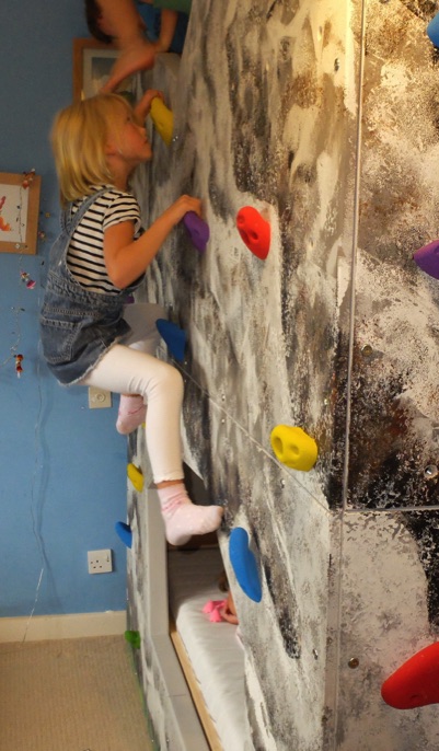 Five sets of "smooth mini jugs" from Holdz were fitted to provide some good routes around three faces of the bunk. The back wall is smooth as it is close to the wall.